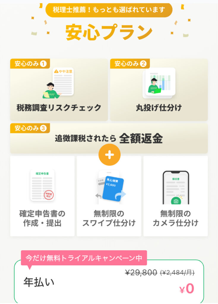 カンタンプラン、安心プランの他に、(領収証を送るだけの)丸投げプランもあります。